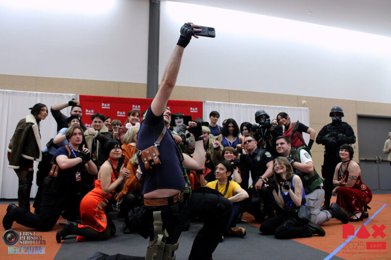 The third cosplay meetup on Saturday of PAX East 2025 was for fans of the Resident Evil game franchise. Run by Nerd Caliber’s friend kenneth_pereira, people cosplaying Leon Kennedy (like Kenneth), Ada Wong, Lady Dimitrescu, Heisenberg and more showed up to show off and meet new friends. More recent characters and designs seemed to dominate the cosplay. While there are plenty of Ashleys and Racoon City police officers and a few S.T.A.R.S. officers, there’s no Albert Wesker or Nemesis. In fact, Lady D, one of her daughters and Heisenberg appear to be the only villains in the meetup.